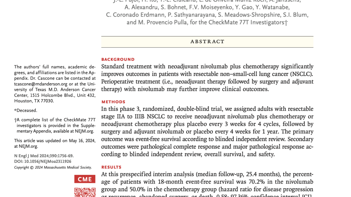 Emploi du nivolumab en périopératoire chez les patients atteints de cancer du poumon non à petites cellules